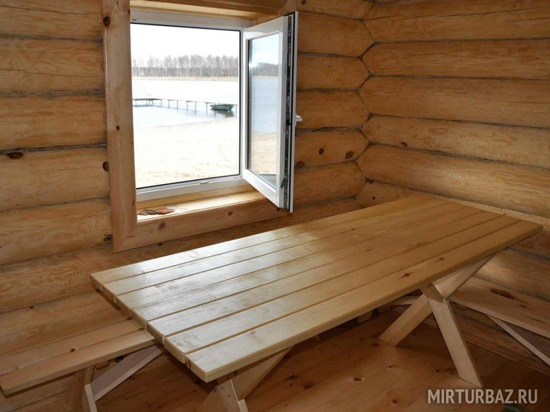 Новая банька построена на берегу, что позволяет нырять в прорубь зимой и с мостков летом.