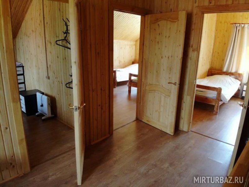 На втором этаже две комнаты двуспальная кровать, диван и две односпальные кровати на 7 мест. Идеальный вариант для семьи и друзей.