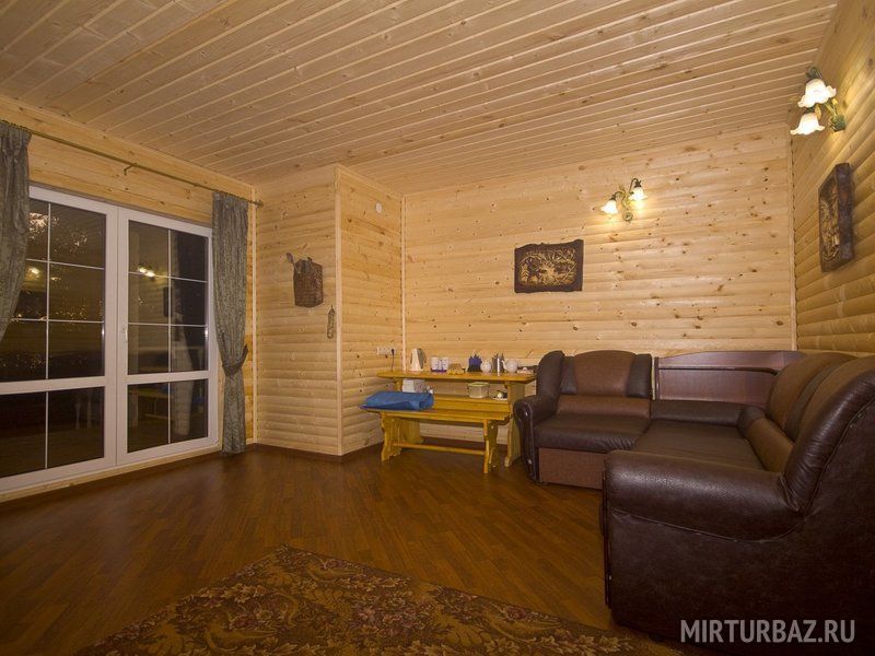 На первом этаже каждого коттеджа каминный зал. Все номера благоустроенные :душ, туалет, горячая, холодная вода, телевизор, холодильник .