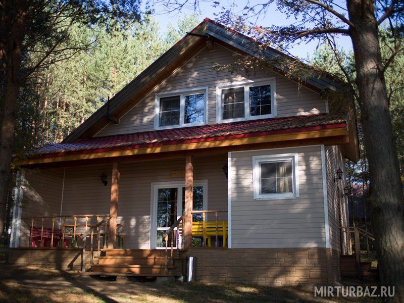 Большой коттедж на 6 семей расположен в красивом сосновом бору 1,5 га прямо на берегу озера Серменок, до озера Селигер 80 метров. На первом этаже коттеджа большой каминный зал-столовая, бар, банкетный зал, комната отдыха с настольными играми, DVD, спутниковое телевидение, караоке. Коттедж обслуживают свой повар, администратор, горничные. В коттедже 4 двухкомнатных, трехместных и 2 однокомнатных двухместных номера.