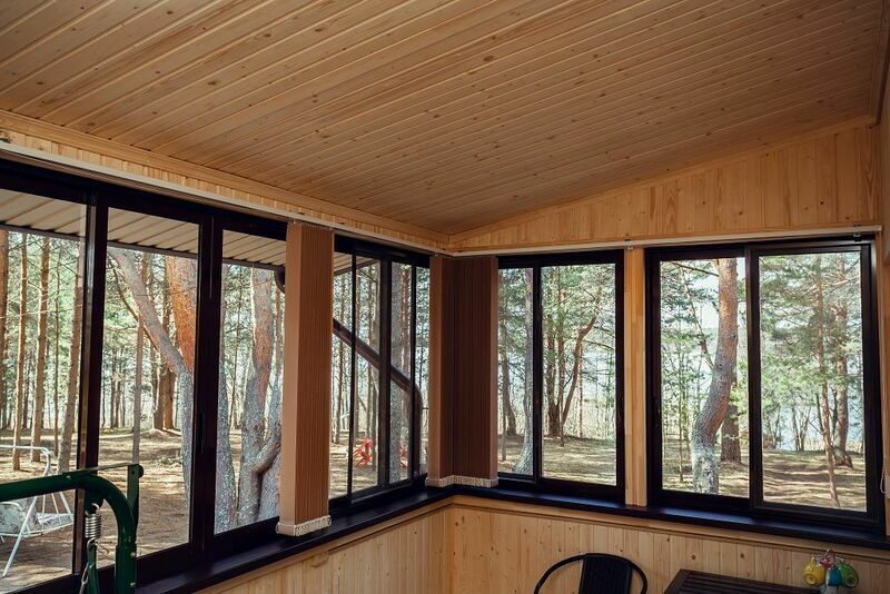 Также на первом этаже, закрытая застекленная веранда с видом на окрестную территорию.