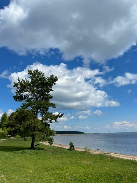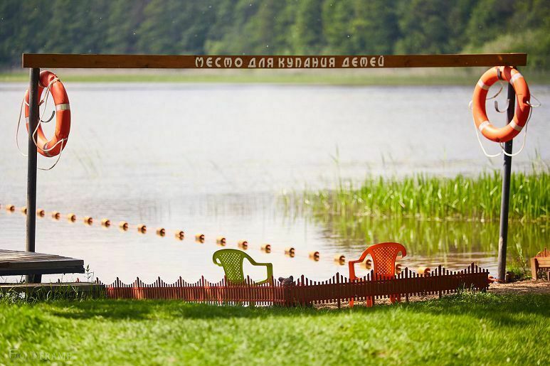 На берегу обустроен небольшой детский пляж, детская площадка, русская баня.