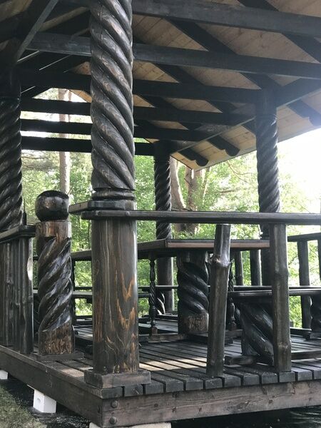На территории 1,5 га находится : Большой трехэтажный коттедж на 6 семей , три двухэтажных ВИП-коттеджа на одну семью 4-6 чел, две однокомнатные квартиры с отдельным входом и видом на озеро .