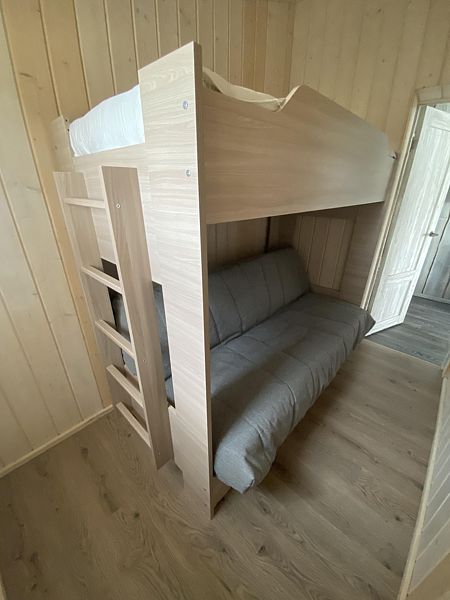 - 2 жилые комнаты - комната с двуспальной кроватью, вторая с диваном и кроватью-чердаком;