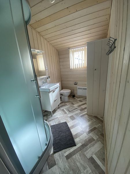 Внутри Коттеджа находятся: 2 жилые комнаты - комната с двуспальной кроватью, вторая с диваном и кроватью-чердаком; ванная комната с душевой кабиной; кухня-столовая с кухонным блоком, раковиной, холодильником и всей необходимой посудой для готовки; обеденная зона со столом, стульями и двухместным комфортным диваном. На территории находятся: спорт площадка, детская площадка с батутом, зона BBQ, парковка, пруды, речка(300м), апитерем, общие зоны, бассейн, животные и дргуое.