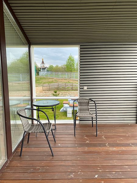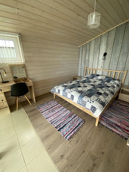 Гостевой дом на 4 комнаты, 10 спальных мест. Общая кухня и санузел. На кухне есть всё необходимое для приготовления еды, холодильник. Без душевой кабины в общей зоне. Душем можно воспользоваться при использовании бани. Внутри дома есть отдельная комната, которая может быть использована хозяином по необходимости. Остальные комнаты с ключами и оборудованы под спальни для гостей. На территории находятся: спорт площадка, детская площадка с батутом, зона BBQ, парковка, пруды, речка(300м), апитерем, общие зоны, бассейн, животные и другое.