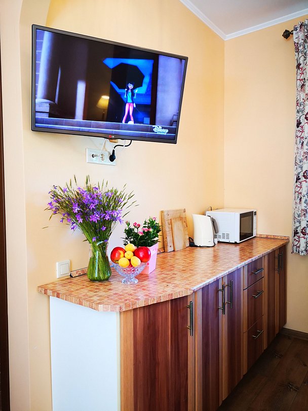 По вашему запросу по возможности предоставят дополнительную посуду, полотенца, тапочки (платно) и др.