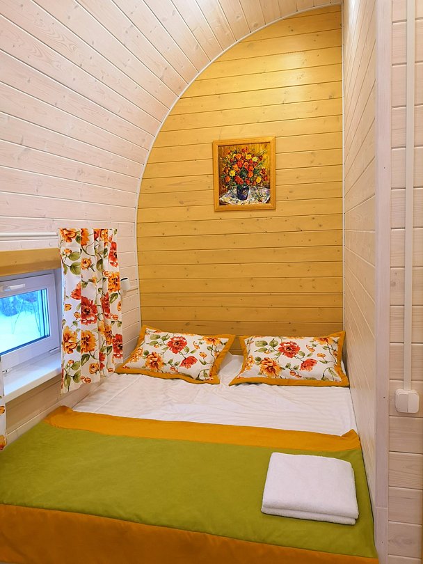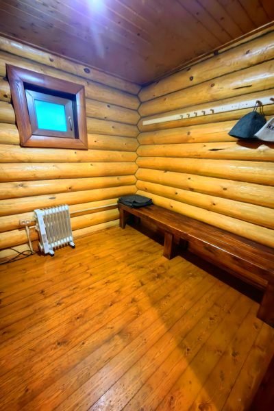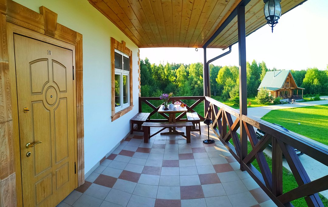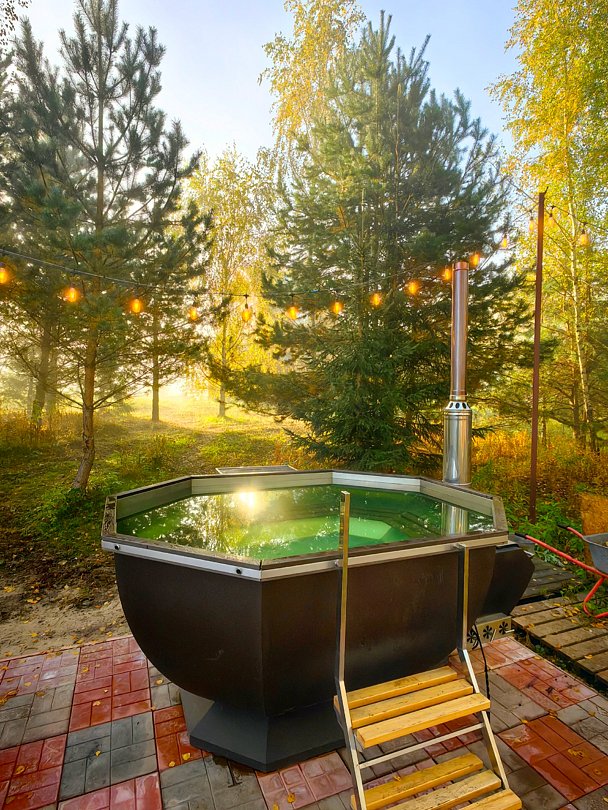 Здесь вы сможете отдохнуть от городской суеты в окружении соснового леса, на берегу слияния рек Хотчи и Волги. Настоящая русская баня на дровах с просторной комнатой отдыха позволит вам расслабиться и восстановить силы. После бани можно окунуться в банный чан с теплой ключевой водой и насладиться панорамным видом на живописные лесные просторы.