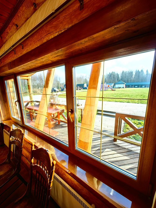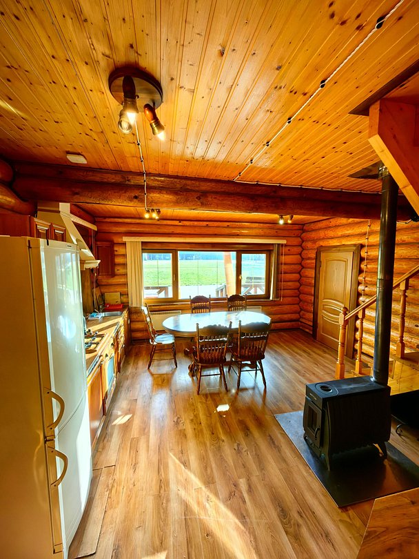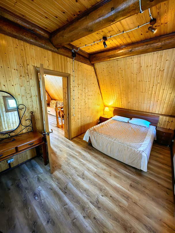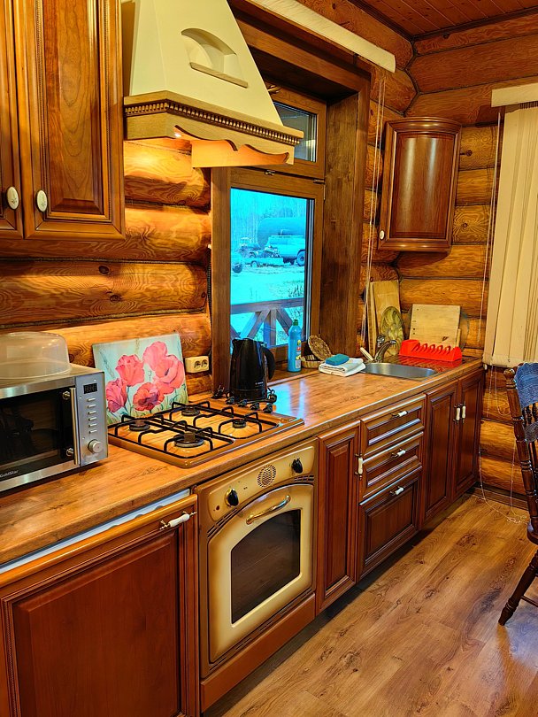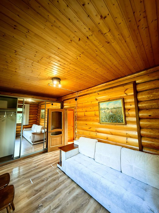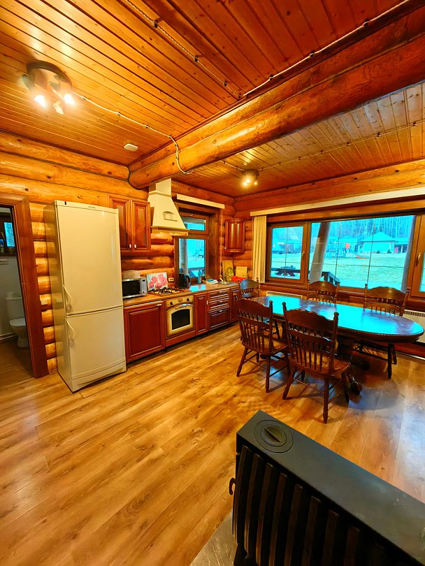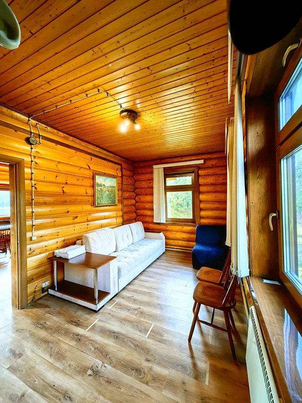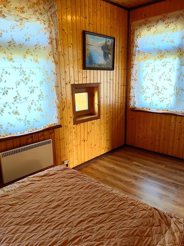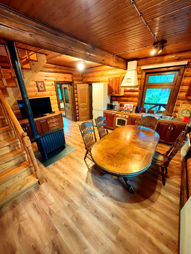 Двухэтажный деревянный дом до 9 гостей с 3-мя спальнями, гостиной-кухней с большим столом, ТВ, панорамным видом.
