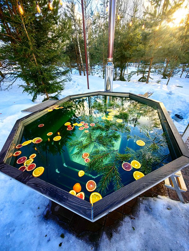 Читать полностьюБольшой, теплый банный чан, размещением до 8 человек.
