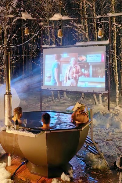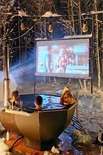 - Банный Чан с кинотеатром + барбекю домик (до 5 человек) — 6500 ₽ / 2 часа + каждый следующий час после двух часов 1000 ₽/час.