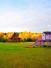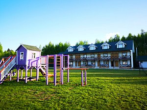 Для Ваших деток построена специальная площадка для развлечений с горкой, качелями, лестницами и мини-домиком.