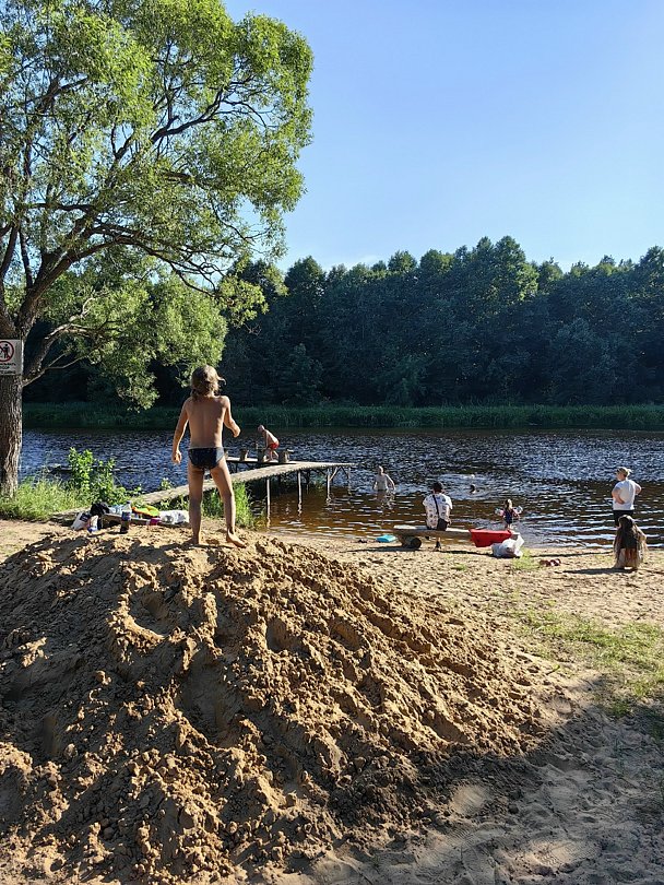 Тип пляжа: песчаныйИнфраструктура: пирсВ непосредственной близости к базе отдыха имеется песчаный пляж с деревянным причалом, с которого можно попрыгать в воду.