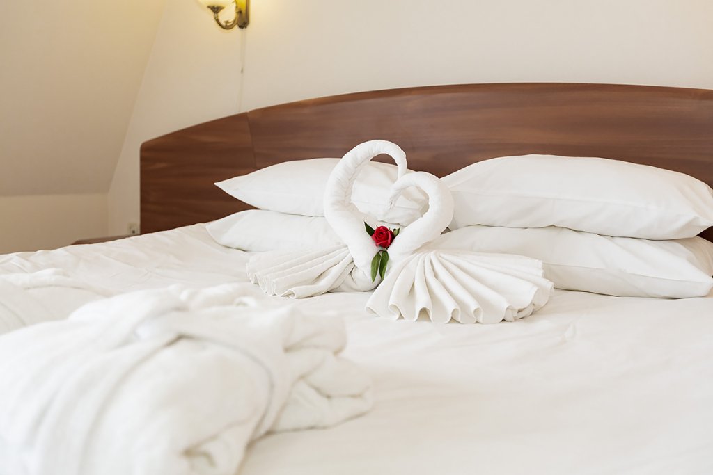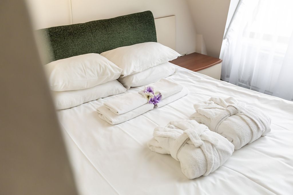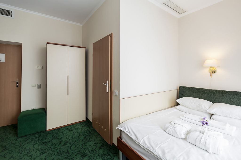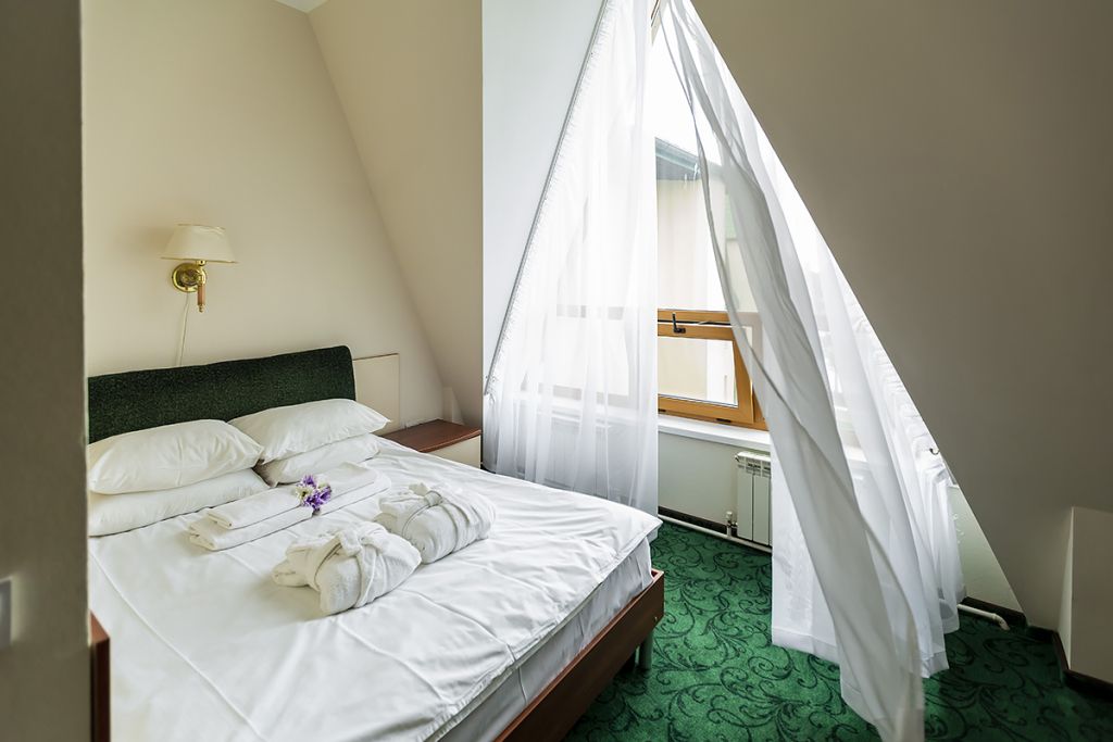 Уютные номера для одно- или двухместного размещения, в комнате установлена двуспальная кровать, в ванной комнате – душевая кабина. Возможна установка детской кроватки.