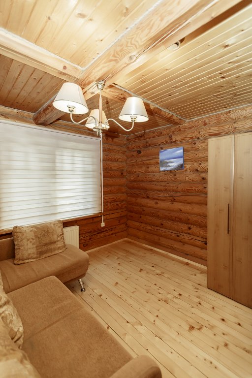 На втором этаже − холл с диваном, шкафом, журнальным столиком и тумбочкой с телевизором; 2 спальные комнаты.