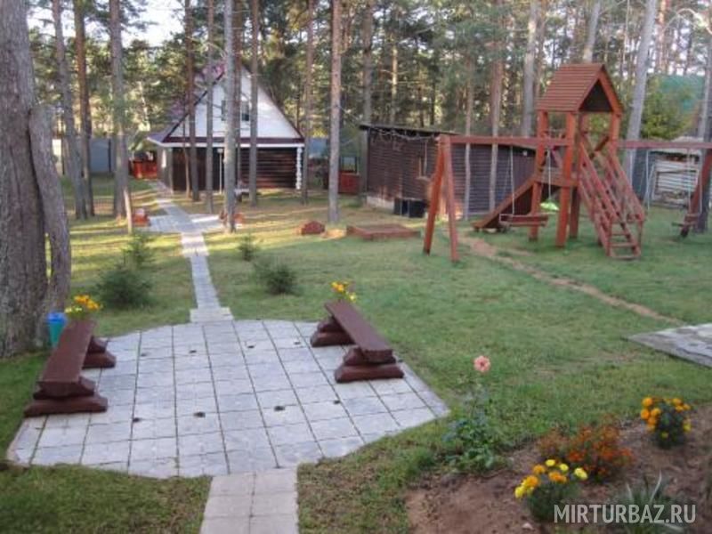 Территория гостевого дома — просторный огороженный участок, на котором расположены два дома, баня, кафе, места для отдыха на свежем воздухе.