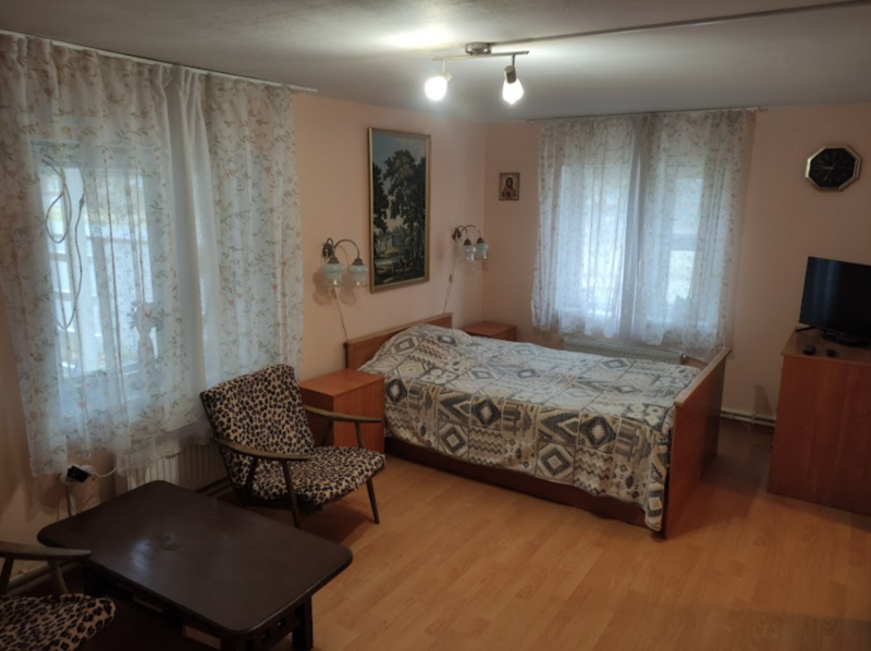 Три односпальные кровати, софа на кухне, тумбочка, вешалки для одежды, спутниковое телевидение, центральное отопление. WiFi.