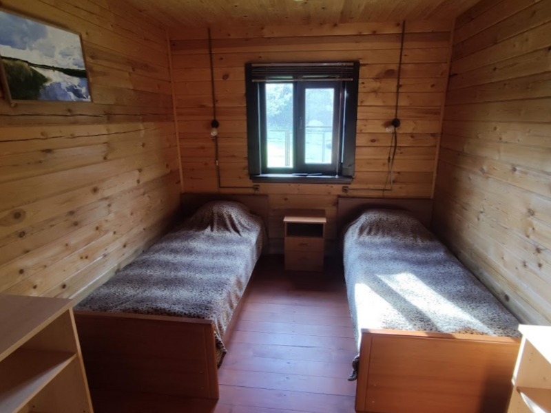 Комната с двумя широкими односпальными кроватями, телевизор, WiFi, стол обеденный, стулья, вешалка, зеркало, холодильник, микроволновая печь, потолочный инфракрасный обогреватель, постельное белье, полотенце.