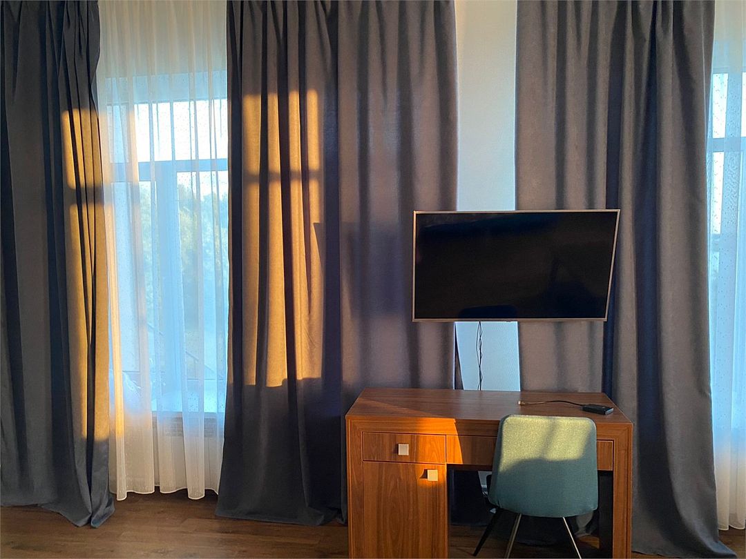 телевизор, Wi-Fi, интернет, холодильник, кондиционер, система климат-контроля, светильник, кулер, фен, радио, ванная комната, душевая кабина, ванна или душевая кабина, санузел, кровать «King size», ортопедический матрас, диван, тумбы, шкаф для одежды, вешалки, журнальный столик, письменный стол, багажная тумба, зеркало, мебельный гарнитур, звуконепроницаемые стены и окна, письменные принадлежности, чайник, унитаз, раковина, мягкая мебель, отопление, душ, кулер на этаже, ламинат, кухонная посуда, кухонная утварь, столовые приборы, стул, туалетные средства, туалет, панорамные окна, цифровое тв, телевизор с плоским экраном, мини-холодильник, москитная сетка, гостиничная парфюмерия, вид на озеро, телевизор со Smart TV, номер для некурящих, рабочий стол, угловой диван-кроватьВ гостиничном номере
