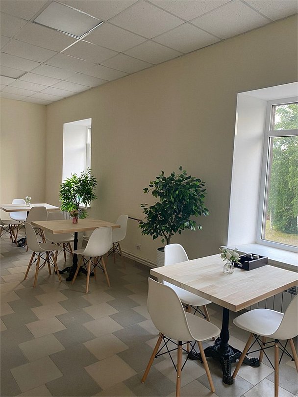 В Усадьбе введена система самостоятельного приготовления пищи на оборудованной кухне с предоставлением обеденного зала для приема пищи.