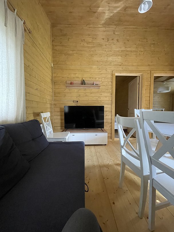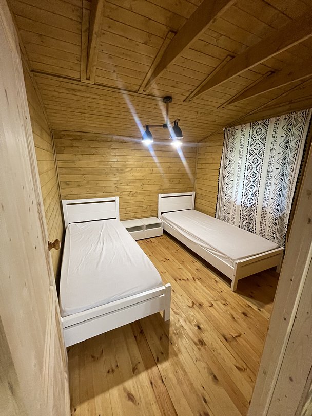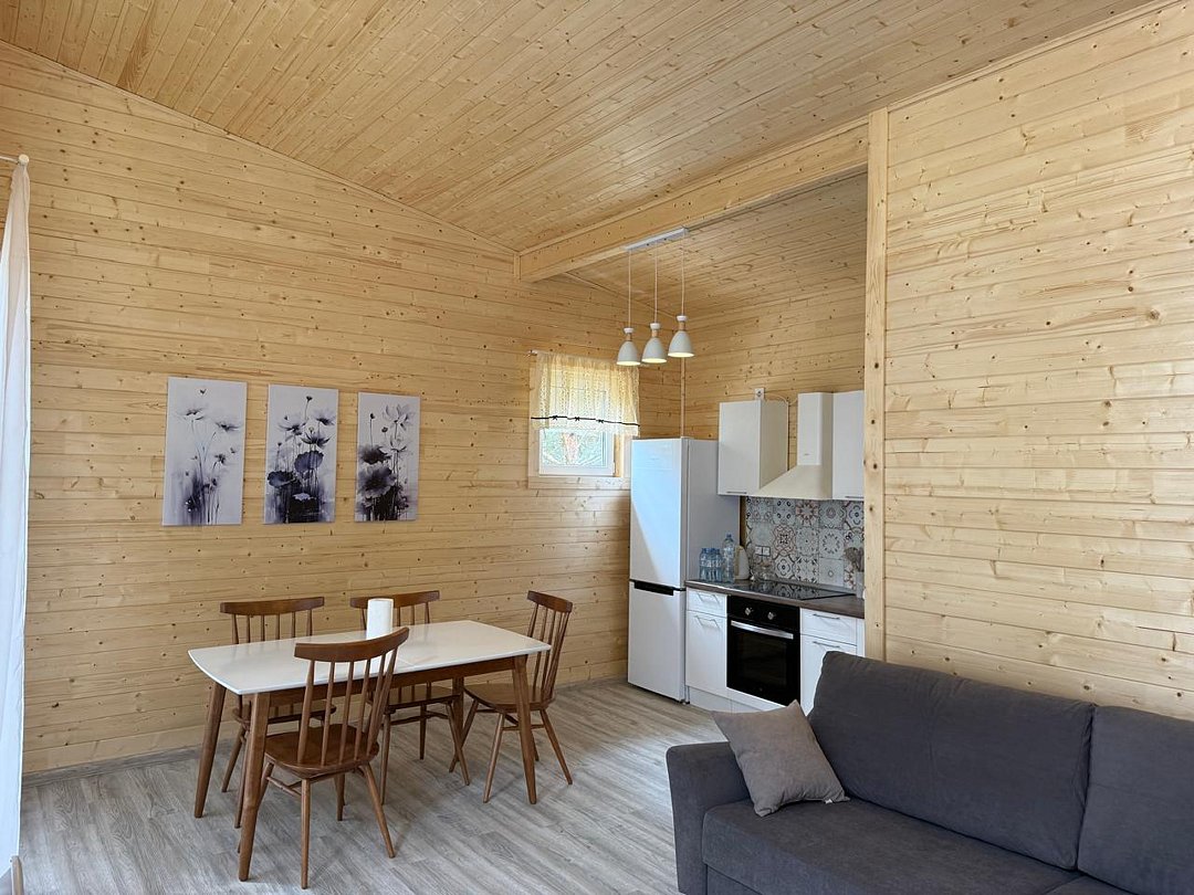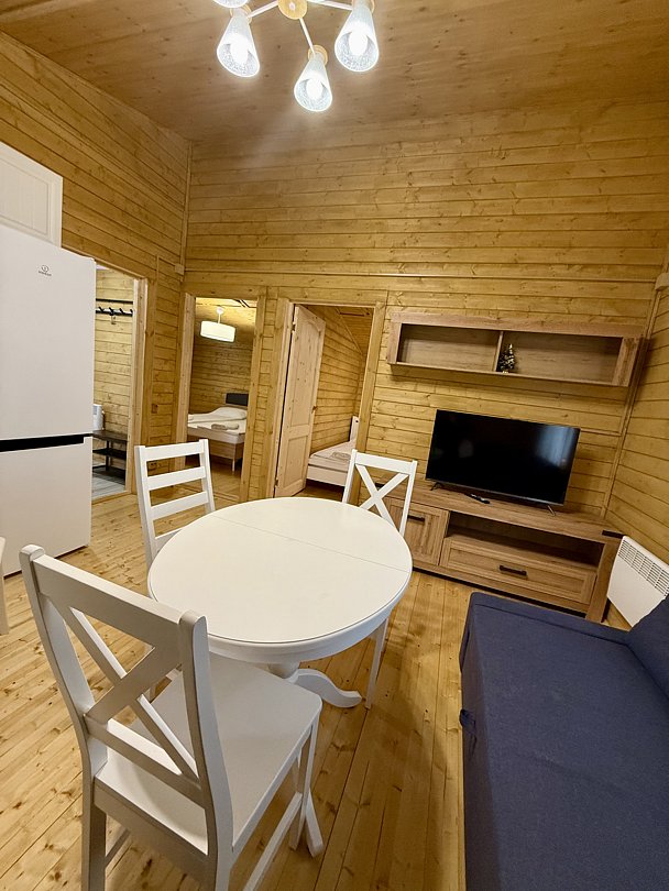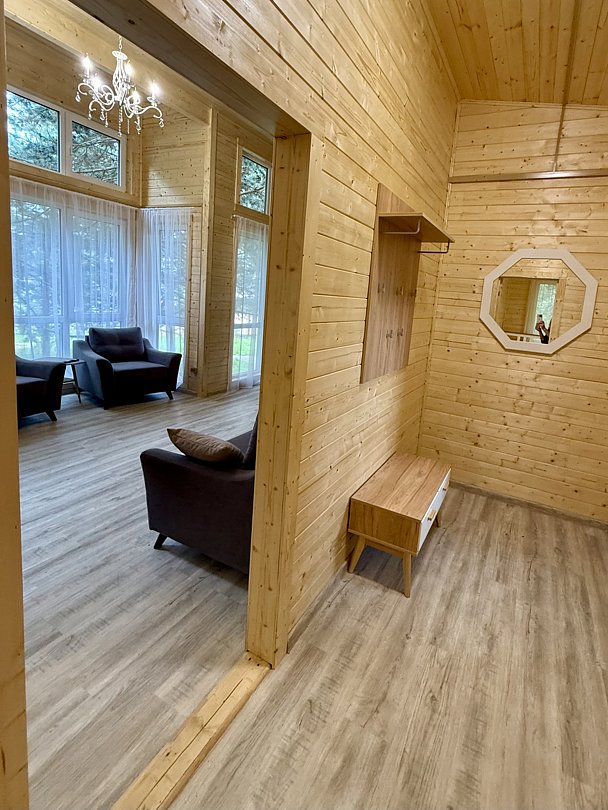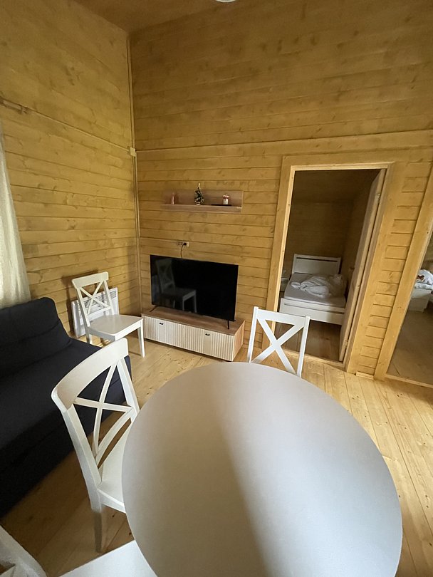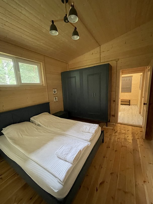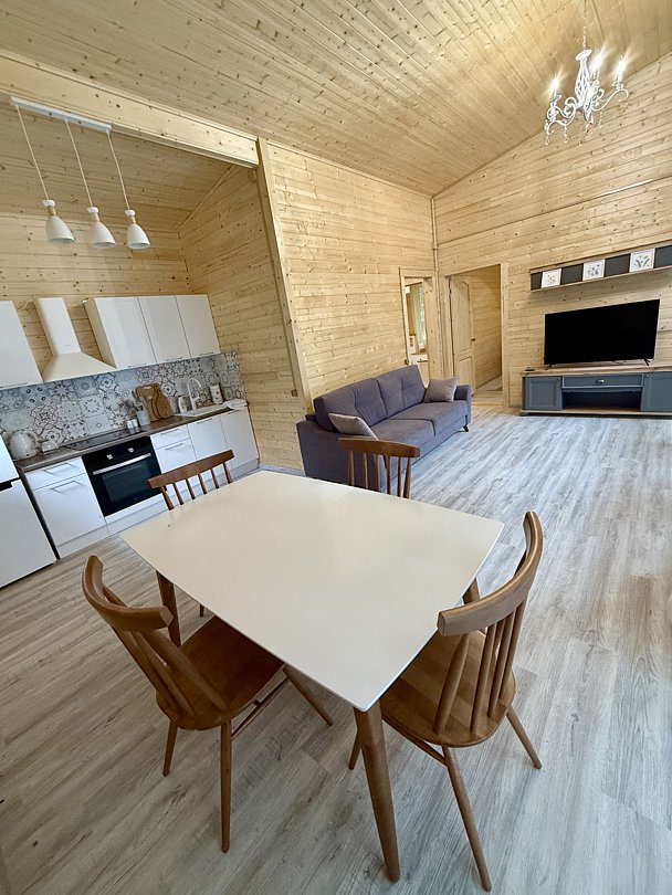Каждый дом продуман до мелочей и оснащен всем необходимым для вашего удобства: две светлые комнаты с современной мебелью, телевизором и высокоскоростным интернетом, а также просторный санузел с душевой кабиной. Все дома расположены на закрытой территории, что гарантирует приватность и возможность насладиться отдыхом без посторонних глаз.