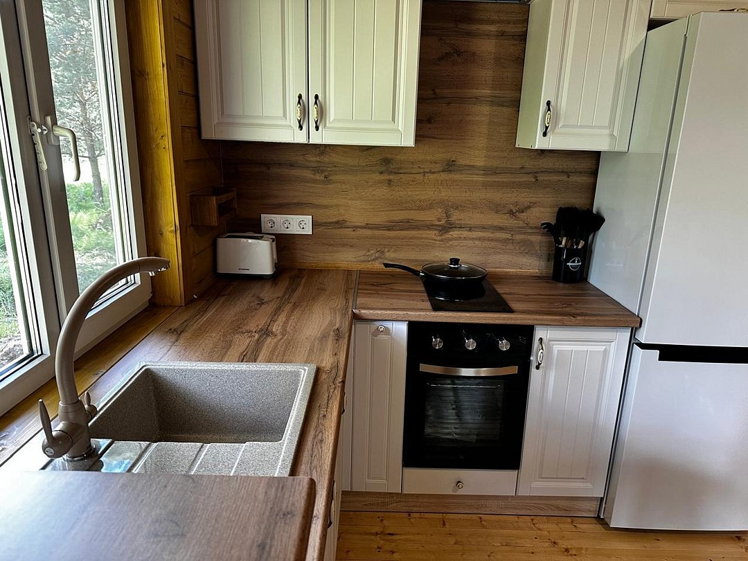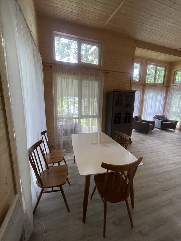 Дом находится на берегу Волги, окруженный соснами и елями. В доме кухня-студия, вся необходимая посуда и утварь для приготовления пищи, микроволновая печь, тостер. Гостиная и обеденная зона.