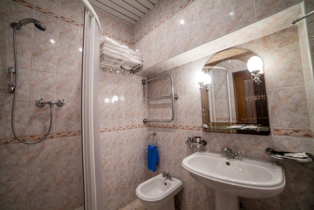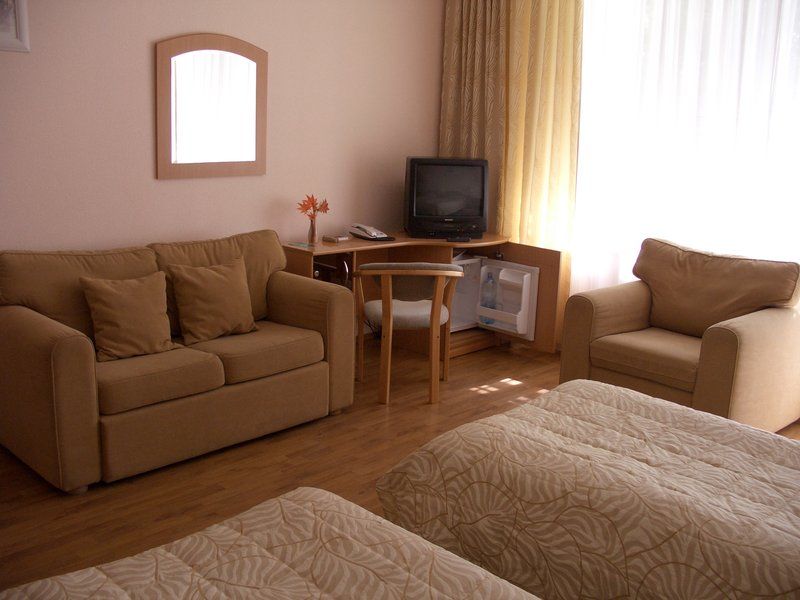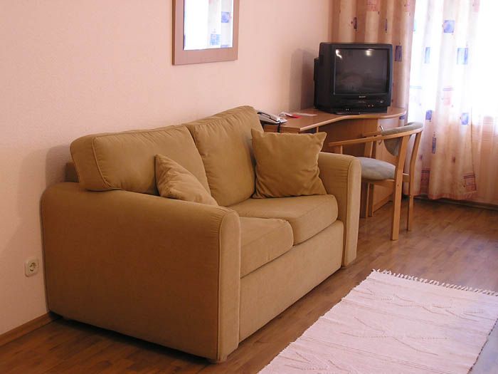 В номере: двуспальная кровать, диван, кресла, ТВ, мини-холодильник, балкон. В ванной: душевая кабина, гидромассажная ванна, фен, туалет.