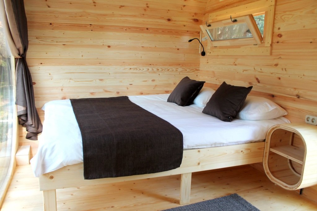 В эко-капсуле: двуспальная кровать, кресло-кровать, тумба для вещей, тумба прикроватная, зеркало, кондиционер, мини-холодильник. Индивидуальный санузел для каждой эко-капсулы: душевая кабина, туалет, фен, в отдельно стоящем модуле в шаговой доступности.