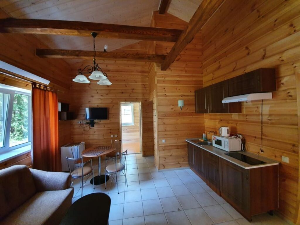 Описание: одноэтажное шале с инфракрасной сауной, 2 спальни, гостиная, обеденная зона, ванная комната.