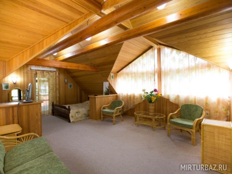 Стандарт; 2-местный 2-х уровневый. Санузел с душем, ТВ, мини-холодильник. Количество номеров: 6