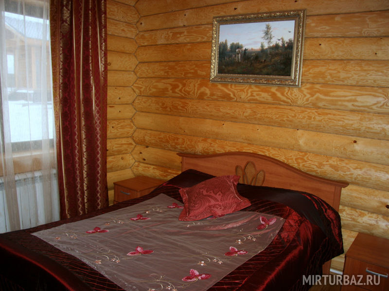 В домике имеются 2 односпальные кровати, либо 1 двуспальная, туалет, душ, кабельное ТВ