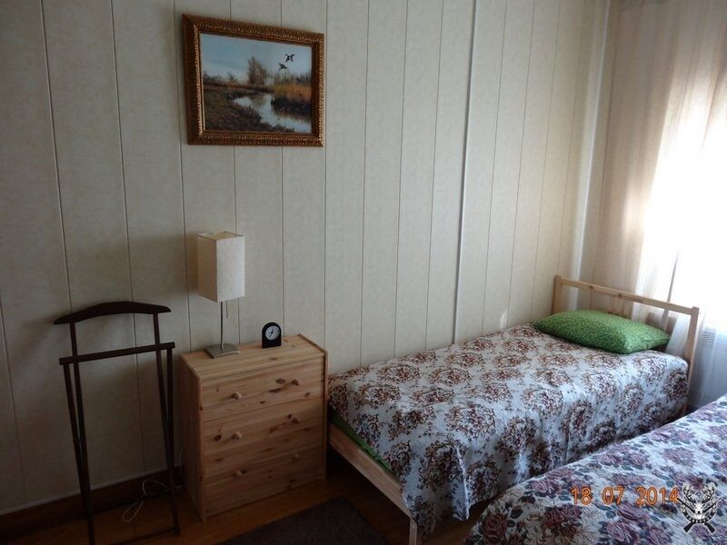 В номере имеется три односпальные кровати. Удобства общие на этаже.