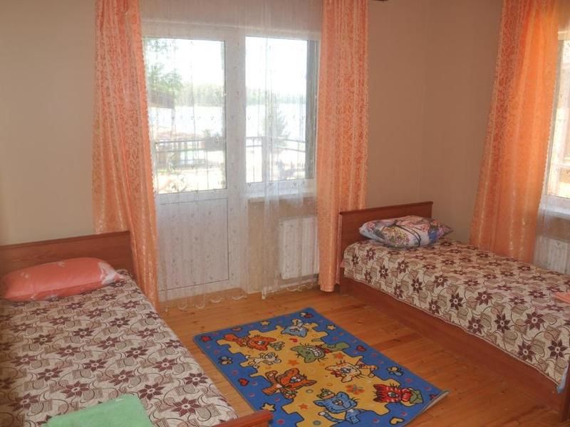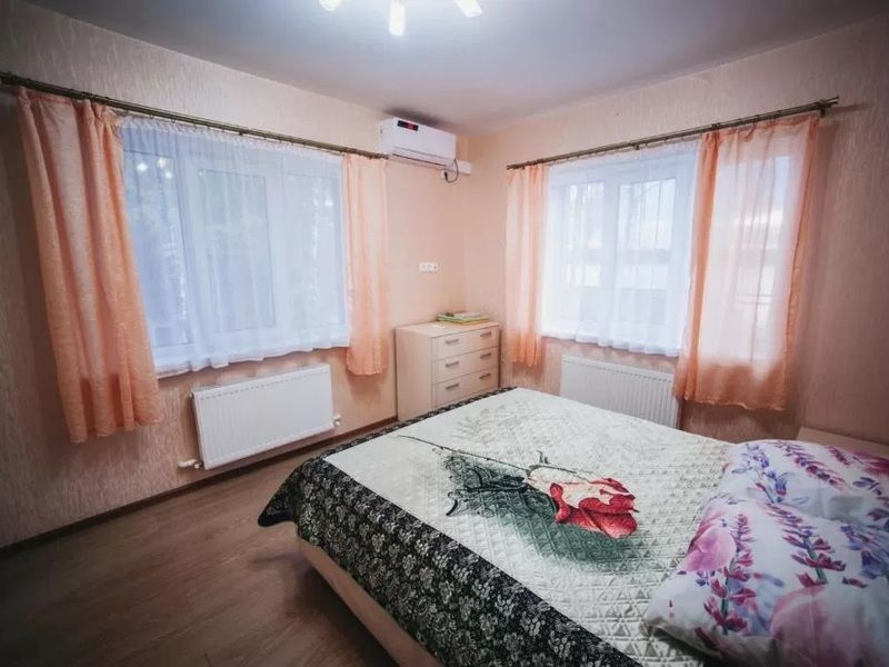 - 2 этаж: 5 комнат (2 комнаты с двуспальным кроватями, 3 комнаты с 2-мя односпальными кроватями) душ-ванна, два балкона.