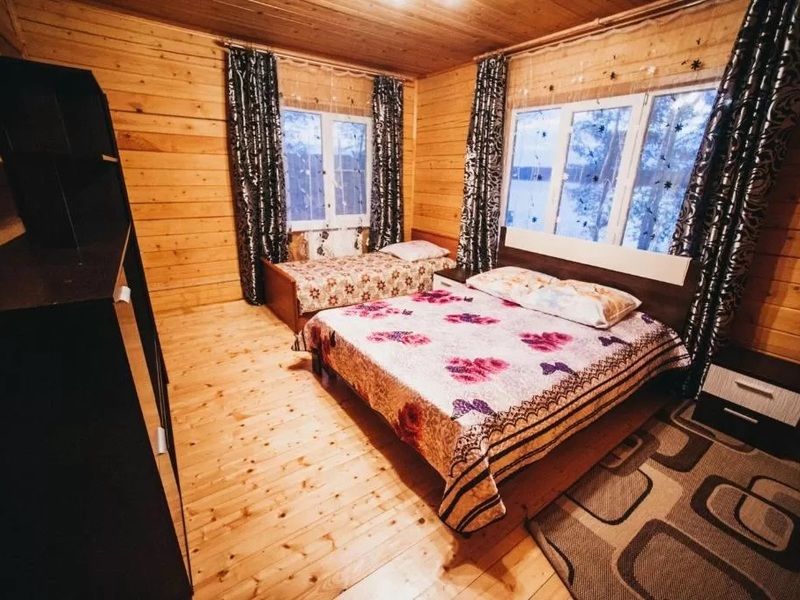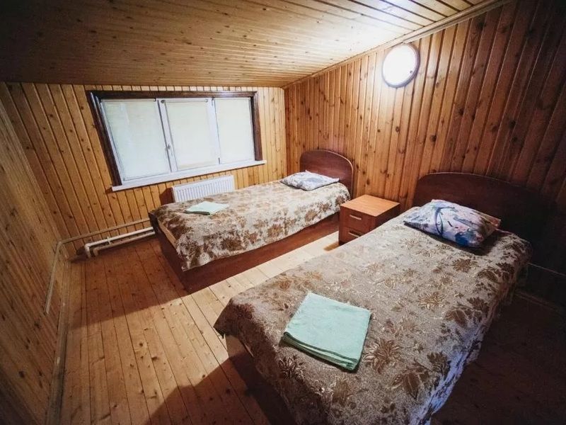- 1 этаж: две комнаты с 2-мя односпальными кроватями, кухня-гостиная, душ-туалет, дополнительно детская комната с диваном;