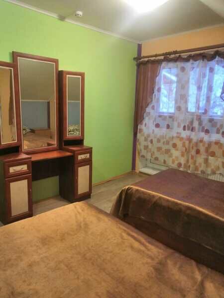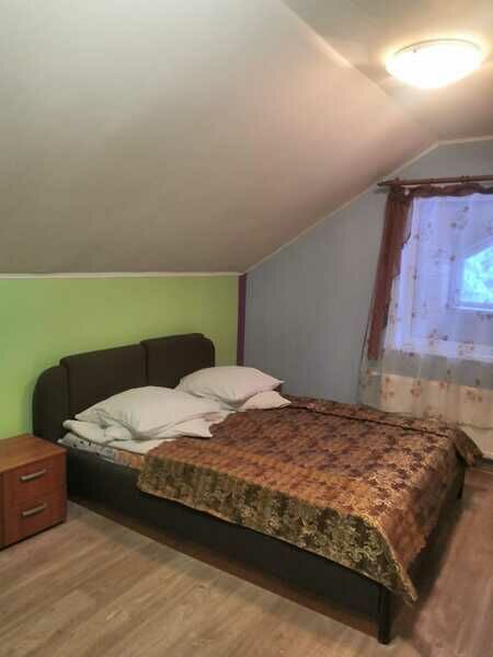 1й этаж - аналог студии: кухонная зона газовая плита, микроволновая печь, электрочайник, холодильник) с набором посуды и спальня в одном помещении. В доме 2х спальная кровать и 2 раскладывающихся кресла. Санузел душ, туалет, раковина. Просторная незастекленная веранда. Собственная котельная.