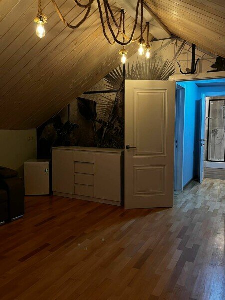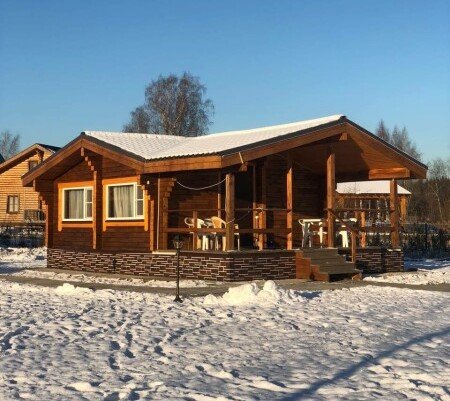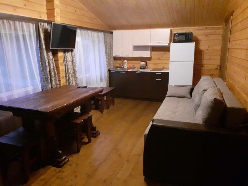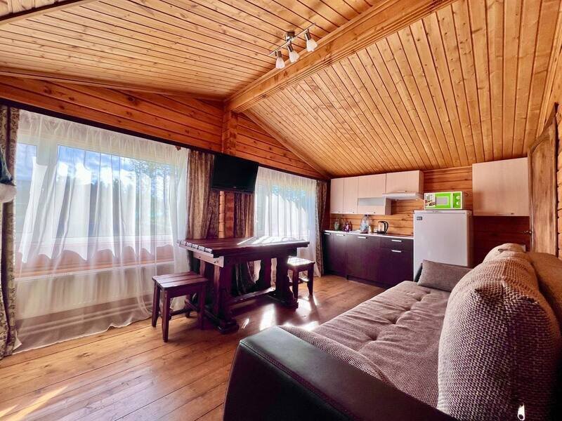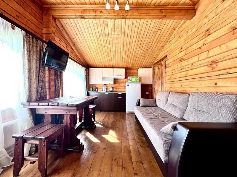 Двухкомнатный шестиместный номер в деревянном доме на берегу реки на базе отдыха «Жуковка Village».