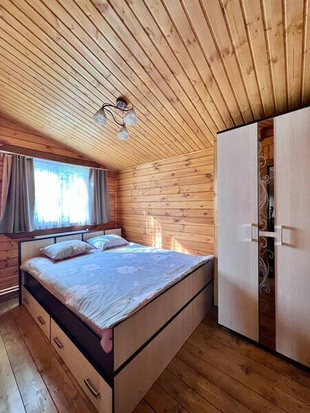 Новый уютный рубленый дом со всеми удобствами (на 8 человек). Три отдельные спальни, кухня-гостиная, комфортный санузел с душевой кабиной, холодильник, стиральная машинка, микроволновая печь, чайник, чистое постельное белье и полотенца, TV, Wi-Fi, мангальная и костровая зоны. Дополнительные подушки и одеяла.