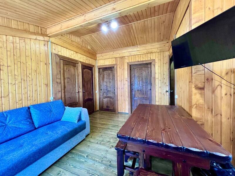 В доме вас ждут: четыре уютные спальни на 8 человек, отдельная кухня с бытовой техникой: настоящий дровяной камин, санузел с ванной, кухонная техника: холодильник, чайник, микроволновая печь, чистое постельное белье и полотенца, TV и Wi-Fi, мангальная и костровая зоны. Дополнительные подушки и одеяла.