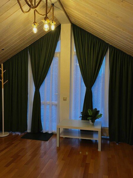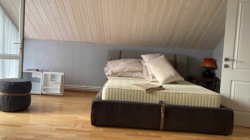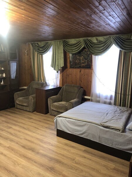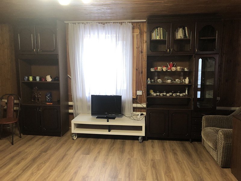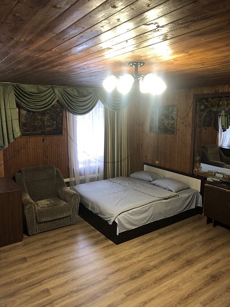 Большой двухэтажный семикомнатный рубленый дом, вместимостью до 18 гостей. Пять отдельных спален с удобными кроватями и раскладными диванами. Собственная полноценная кухня со всей необходимой бытовой техникой: холодильник, чайник, газовая плита, микроволновая печь, посудомоечная машина, посуда для приготовления пищи, сервировки стола и пр.