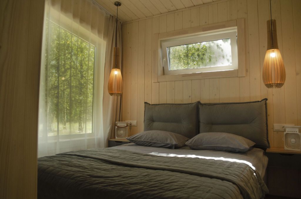 Мини-апартаменты среди сосен и берёз. Спальня, кухня и ванная комната. А самое главное — панорамные окна, чтобы просыпаясь, увидеть рассвет прямо из спальни и наблюдать закат, сидя у очага на веранде. Личная мангальная зона у Вашего дома.