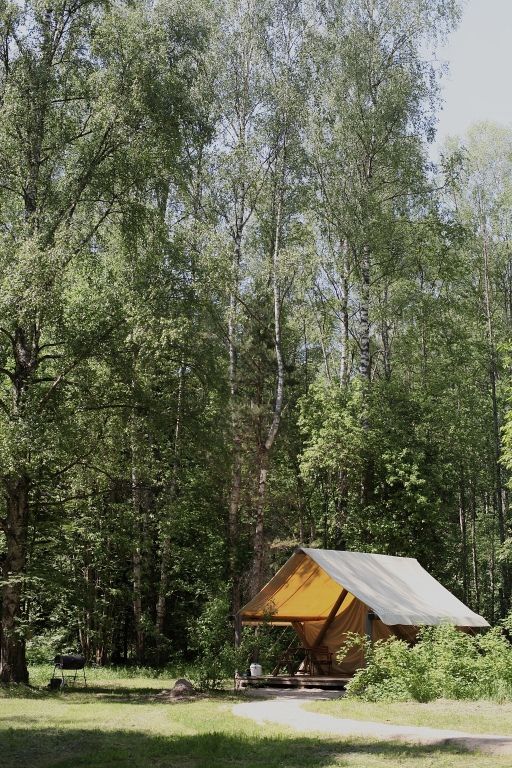 Уютный сафари-тент с полным погружением в природу, в благородном лесу.