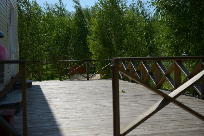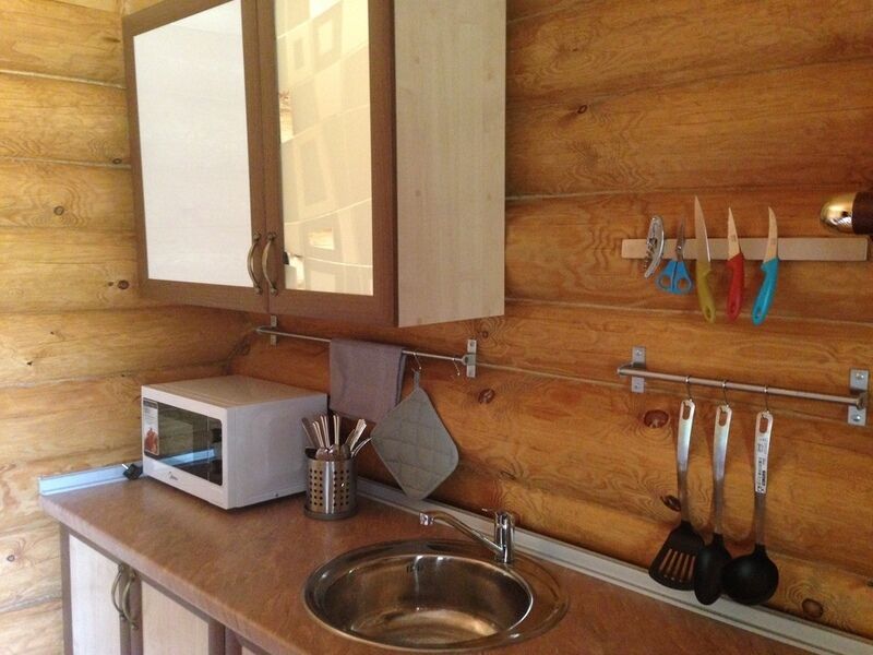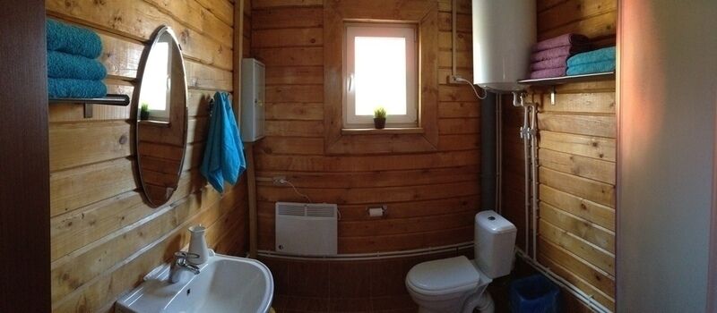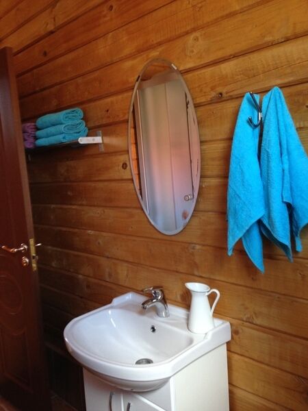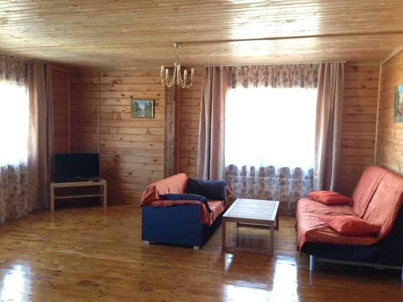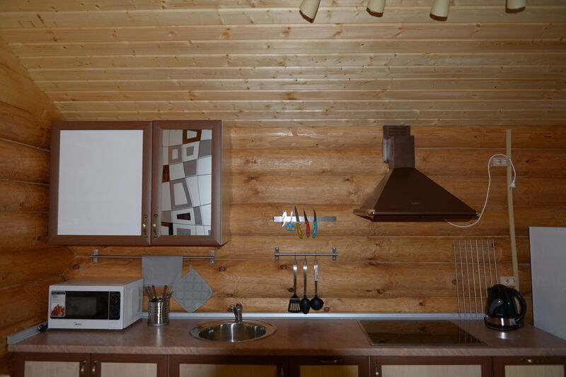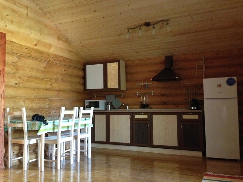 В доме 5 спален (односпальная или двуспальная кровать в каждой комнате), гостинная с камином, LCD телевизор, караоке. В кухне: есть духовка, электрическая плита, вся необходимая посуда, электрочайник, холодильник, микроволновка. В доме две ванные комнаты. Рядом с коттеджем – индивидуальная площадка для барбекю с мангалом дровницей и верандой.