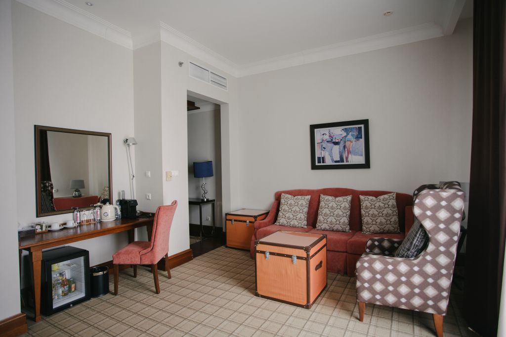 Каждый номер отеля оснащен телевизором, кондиционером, сейфом, чайной станцией, есть кофемашина и бесплатный мини-бар.