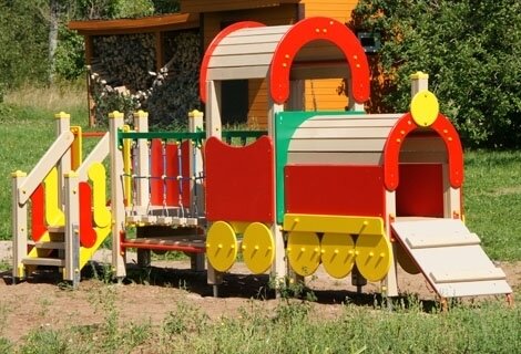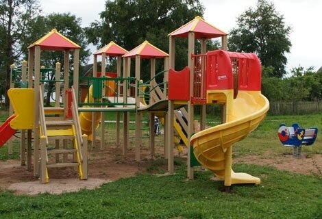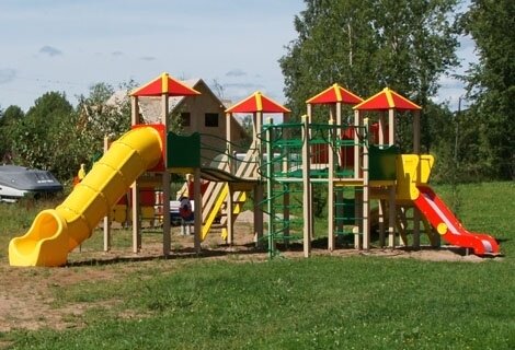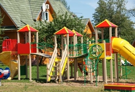 Рядом с Княжьим теремом оборудована детская игровая площадка с соблюдением требований по безопасности. Маленькие гости резиденции смогут прокатиться с горки, покачаться на качелях и полазить по сложным лабиринтам лестниц