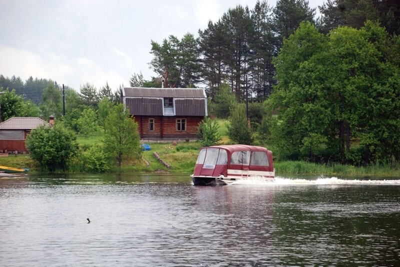 Встретили нас с самоваром, настойкой и закусками (очень приятно), погрузились в Кайман (судно на воздушной подушку, очень комфортный) и отправились по озеру на базу.