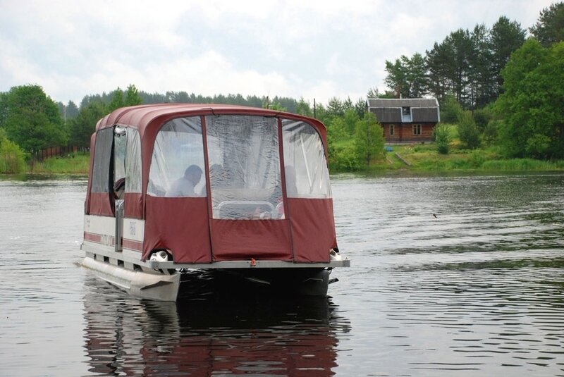 Катер имеет просторный салон, в котором даже в сильные морозы поддерживается комфортная температура. Окна в салоне расположены по всему периметру, что дает прекрасный обзор и позволяет всем пассажирам любоваться природой. Аэроход также используется для трансфера гостей.