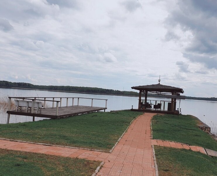 Открытая беседка на пристани — это возможность вдохнуть чистый воздух озера, полюбоваться красотой русской природы и провести время за столиками в дружной компании. Беседка рассчитана на 8 человек за столиками, 4 — за барной стойкой.