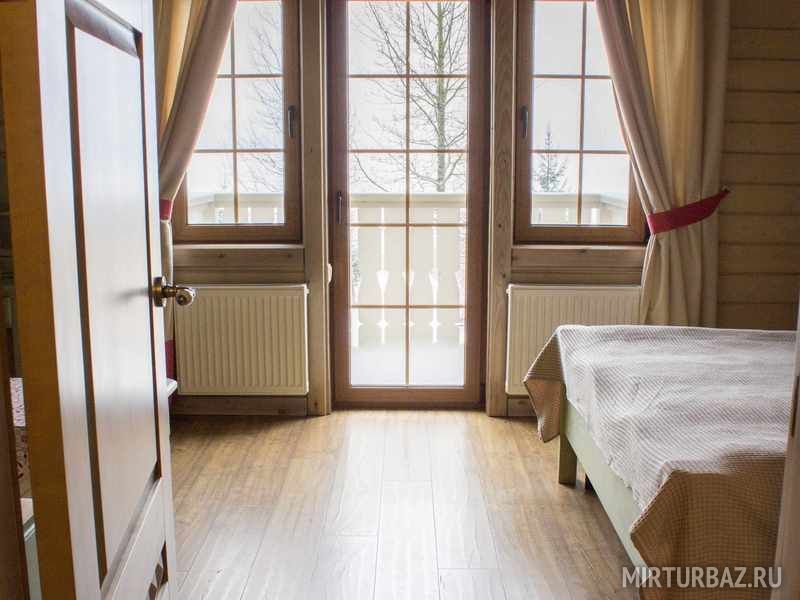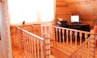 Двухэтажный коттедж в охотничьем стиле с тремя спальнями с двуспальными кроватями и одной смежной комнатой с односпальной кроватью. Большая общая зона кухня/столовая. Детская площадка напротив дома.