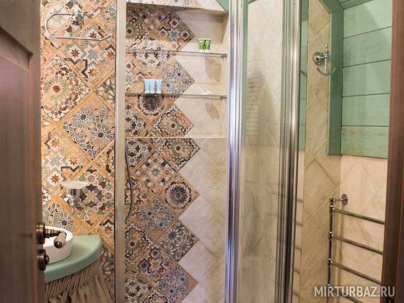 - Ванная комната (туалет, биде, ванна с душем) в каждом номере