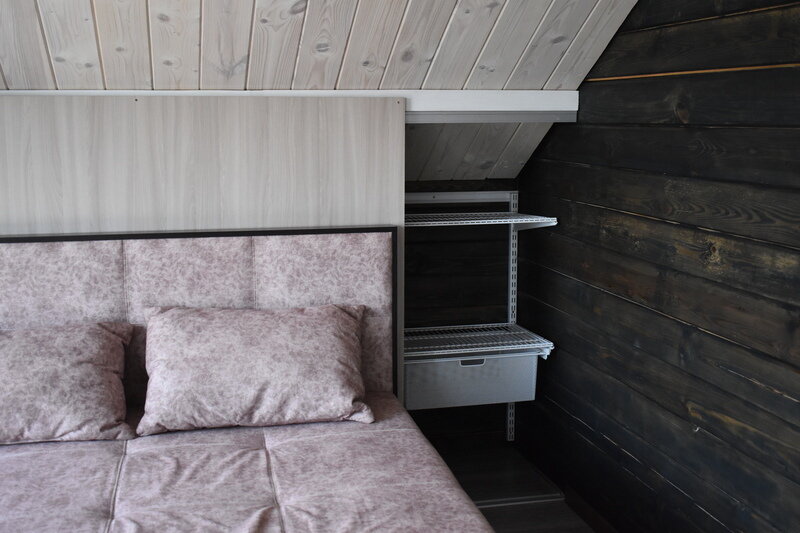 Просторная парная из натуральной древевсины и полноценный предбанник, где можно разместиться небольшой компанией.